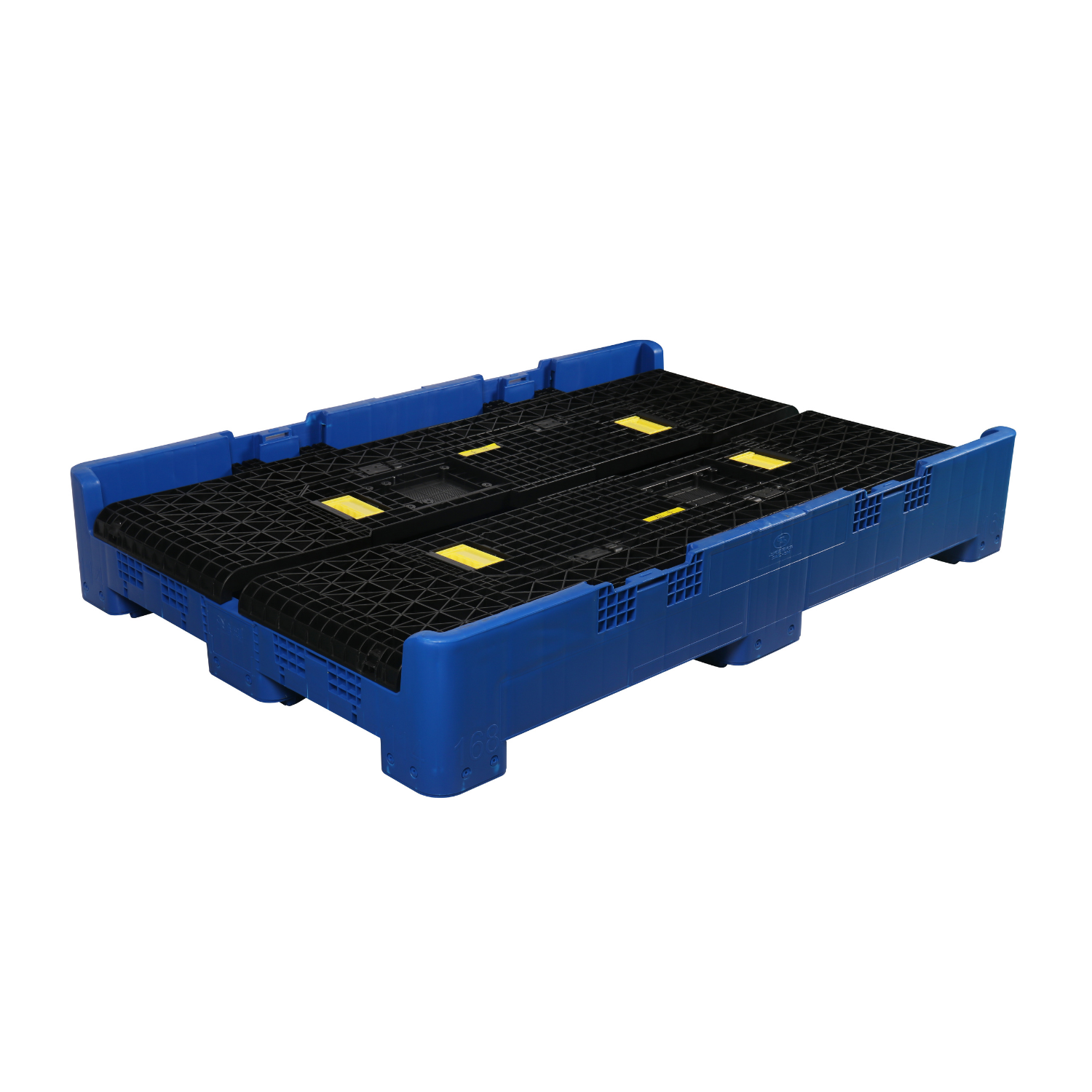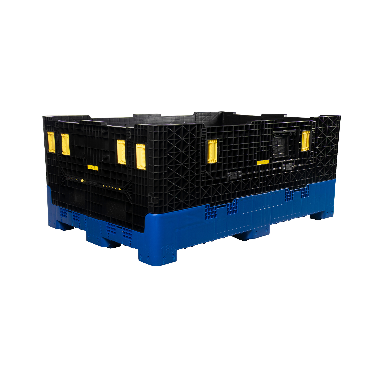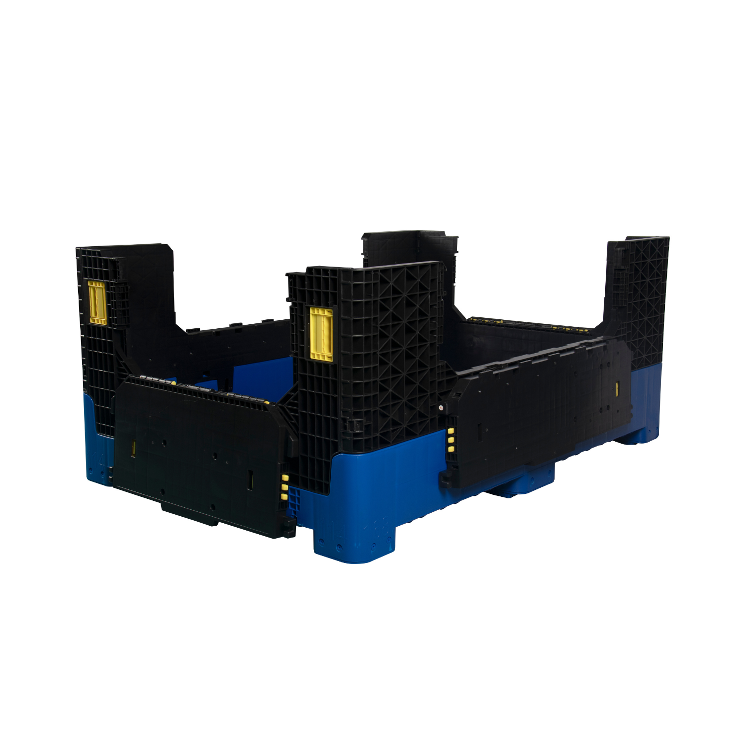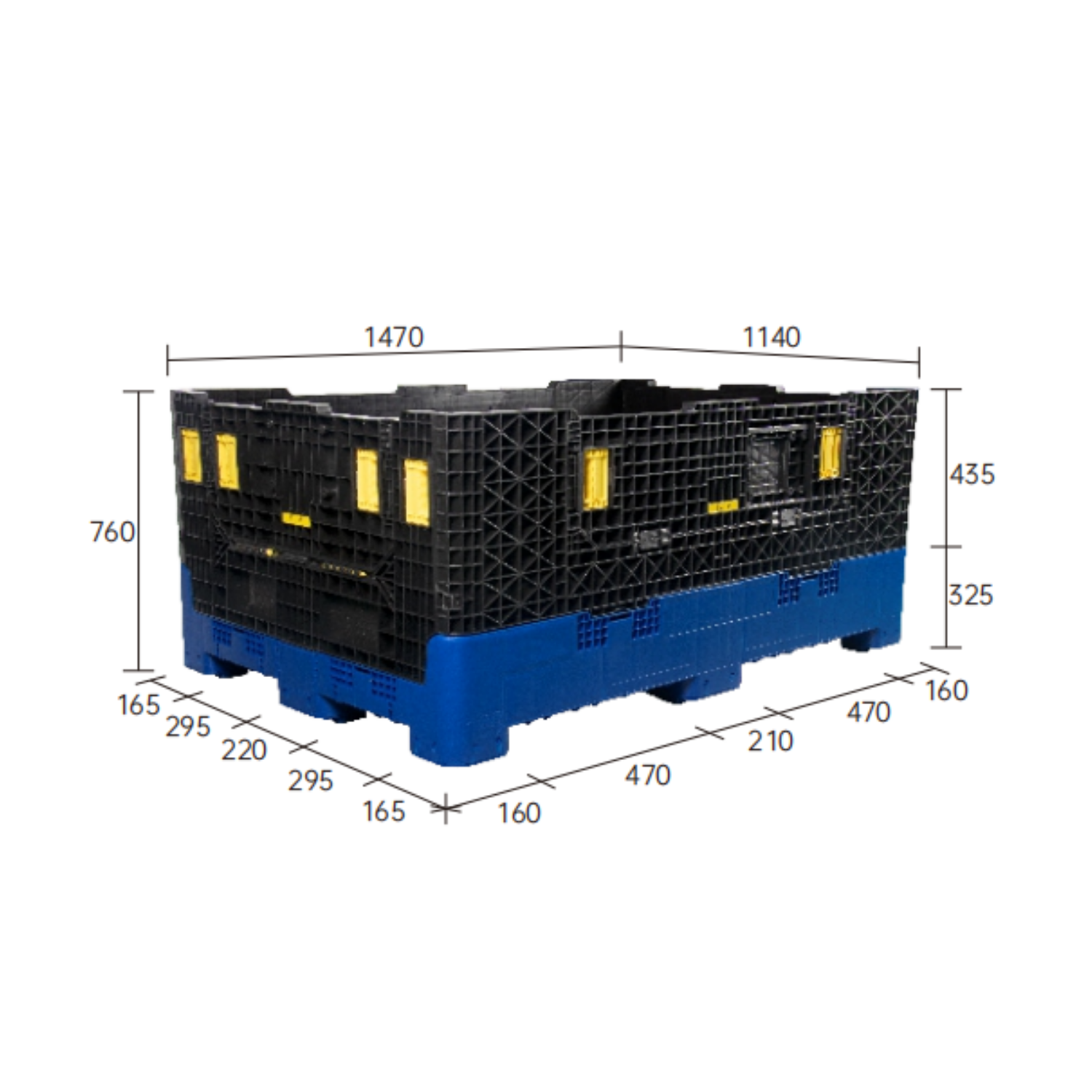 Our 1470 × 1140 mm collapsible plastic container is designed around the AIAG footprint for automotive and industrial use. It is made from 100% recyclable material, which helps you reduce waste in your supply chain. Four side access doors give you faster access to goods than standard two-door designs. 4-way entry supports both forklifts and pallet jacks from every side. This container works well for automotive parts, large metal parts, and battery handling. It is also suitable for agriculture and food applications. You can use it for transport, temporary storage, and internal turnover. It also fits racking systems and automation lines. When folded, it saves return space, and one 40HQ can load 112 folded units.